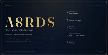 Most tests give you isolated scores. This one tries to show you how the pieces connect — why your politics might reflect your need for order, why your cognitive style shapes your career interests, why your personality and neurotype interact the way they do.