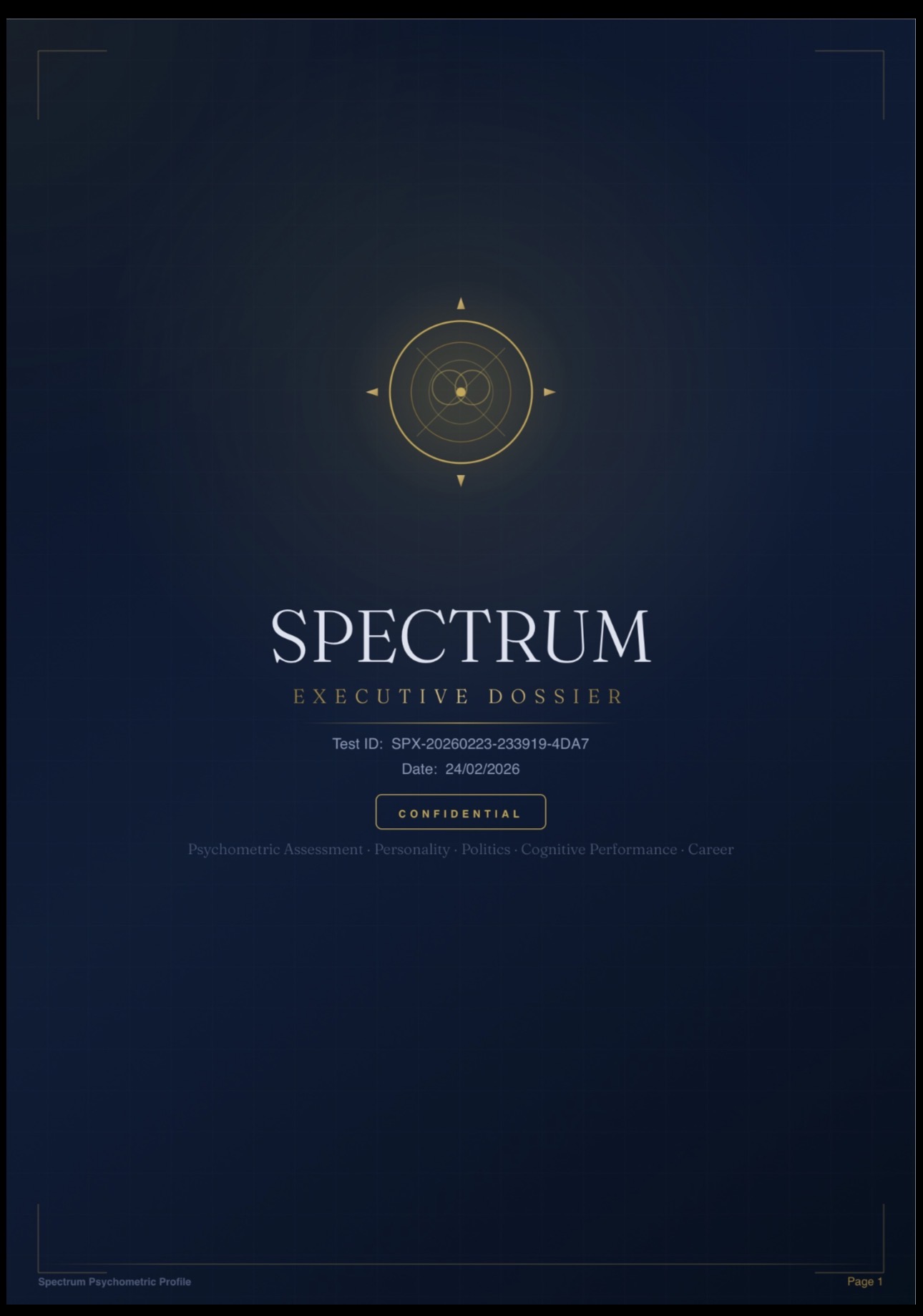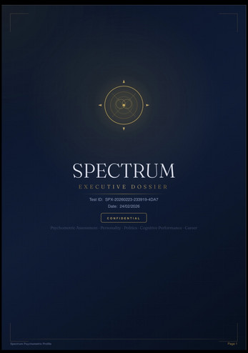 An integrated psychometric assessment that maps your personality, politics, cognitive style, neurodivergent traits, and career interests — then weaves them into a single coherent portrait of how the algorithm sees you.